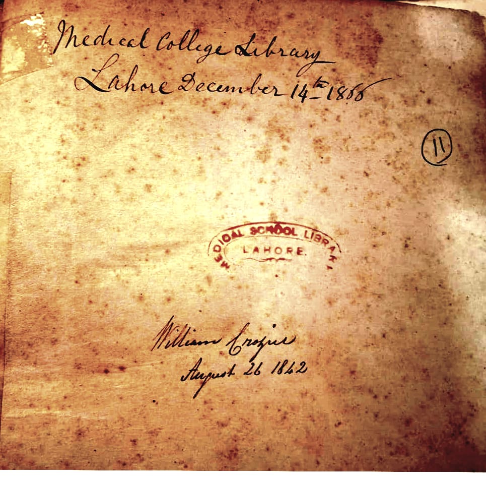This book reached King Edward Medical College library (Lahore Medical College) was published in 1834 by Royal College of Surgeons in London.